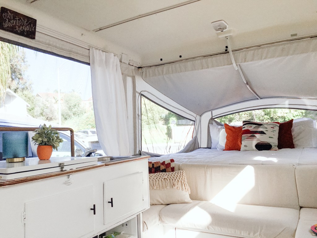 So when we found a 1997 Coleman Sea Pine camper listed for $1,500 on Craigslist, we jumped on it. We got lucky. The camper needed some aesthetic updates – nothing major, and the owner was looking to get rid of it and move on, so we really got a bargain of a tent trailer.